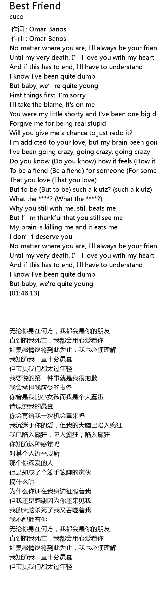 | [00:10.92] | No matter where you are, I'll always be your friend |