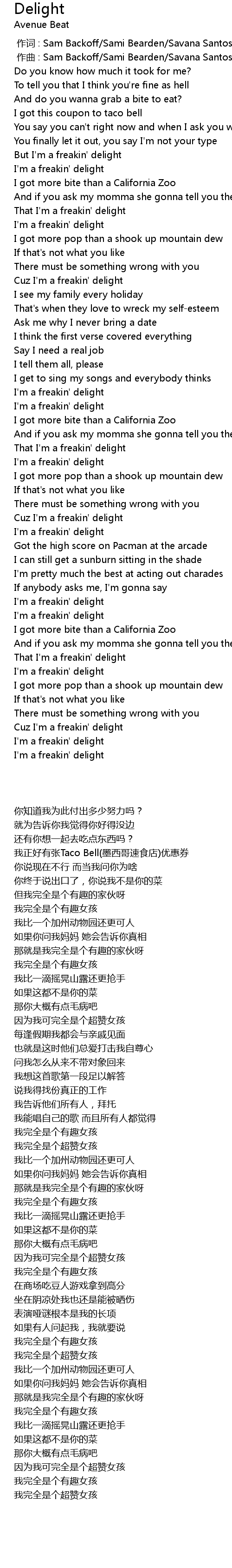 | [02:37.69] | Cuz I' m a freakin' delight |