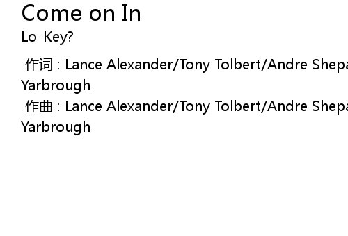 | [00:00.00-1] | zuo qu : Lance Alexander Tony Tolbert Andre Shepard Tyrone Yarbrough |