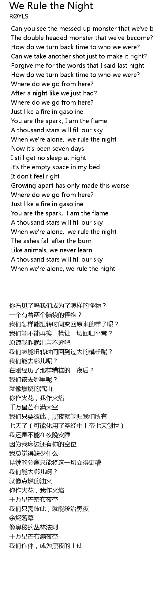 | [00:56.242] | When we' re alone we rule the night |