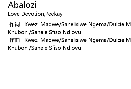 | [00:00.00-1] | 作词 : Kwezi Madwe/Sanelisiwe Ngema/Dulcie Mthembu/Msawakhe Khuboni/Sanele Sfiso Ndlovu |