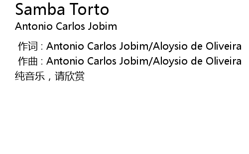 | [00:01.00] | 作曲 : Antonio Carlos Jobim/Aloysio de Oliveira |