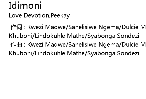 | [00:00.00-1] | 作词 : Kwezi Madwe/Sanelisiwe Ngema/Dulcie Mthembu/Msawakhe Khuboni/Lindokuhle Mathe/Syabonga Sondezi |