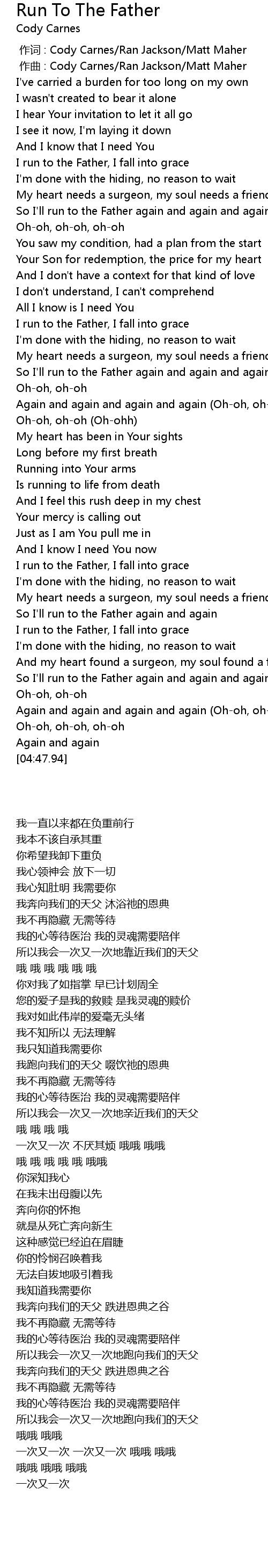| [02:33.37] | So I'll run to the Father again and again and again and again |