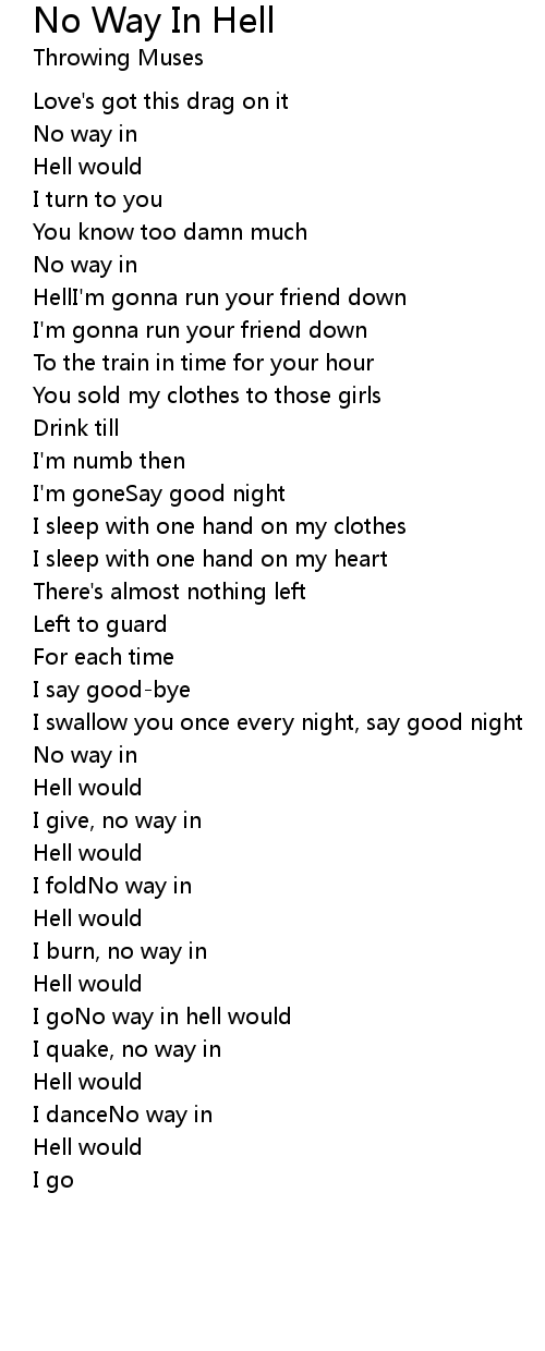 I goNo way in hell would |