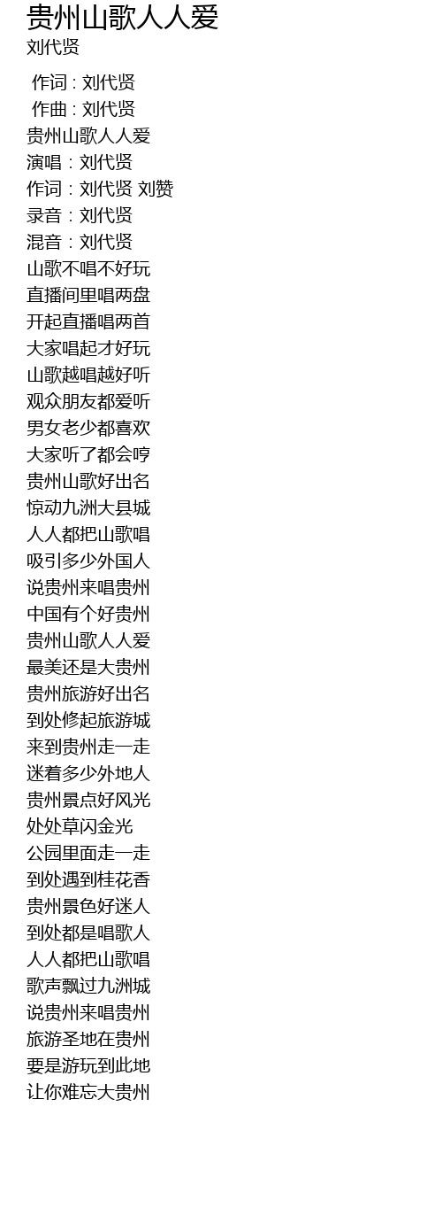 | [01:41.00] | guì zhōu shān gē hǎo chū míng |