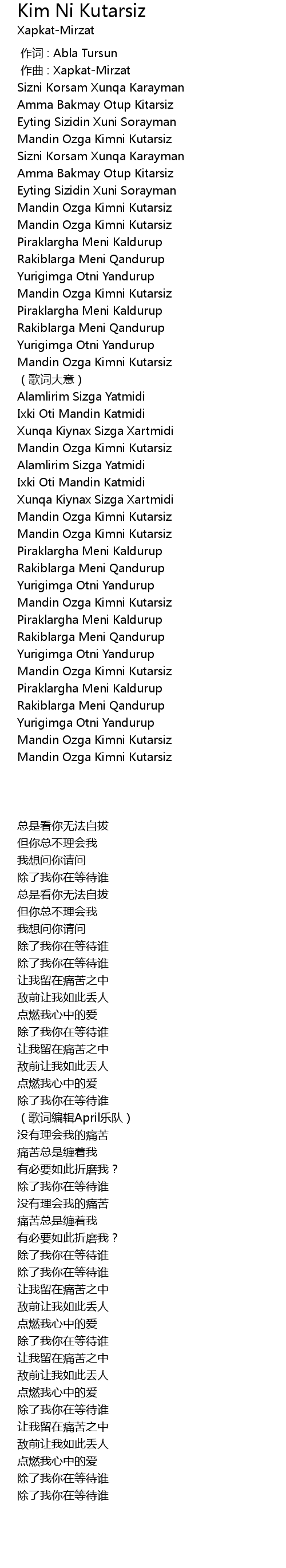 | [01:40.047] | Mandin Ozga Kimni Kutarsiz |