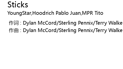 | [00:00.00-1] | zuò qǔ : Dylan McCord Sterling Pennix Terry Walker Jared McCray |