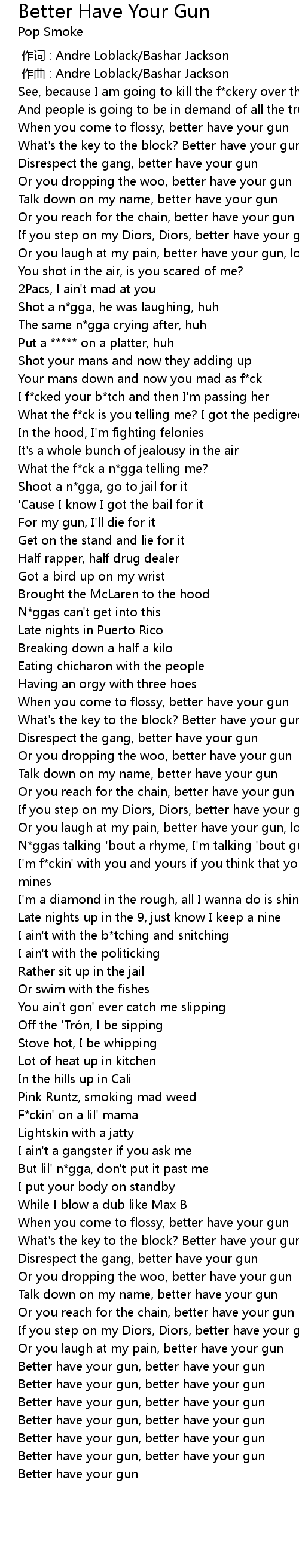 | [01:26.757] | Disrespect the gang, better have your gun |