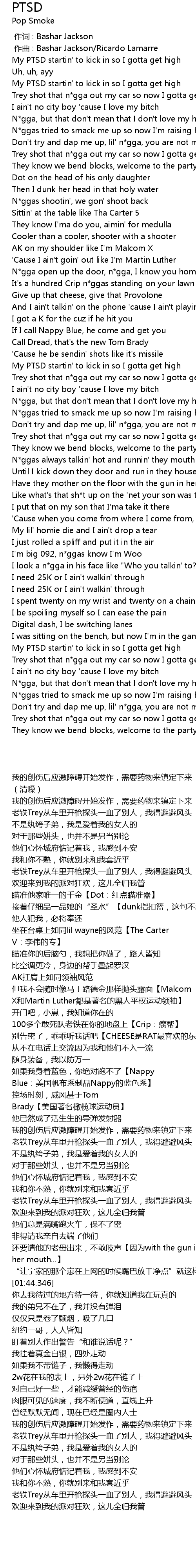 | [00:02.105] | My PTSD startin' to kick in so I gotta get high |