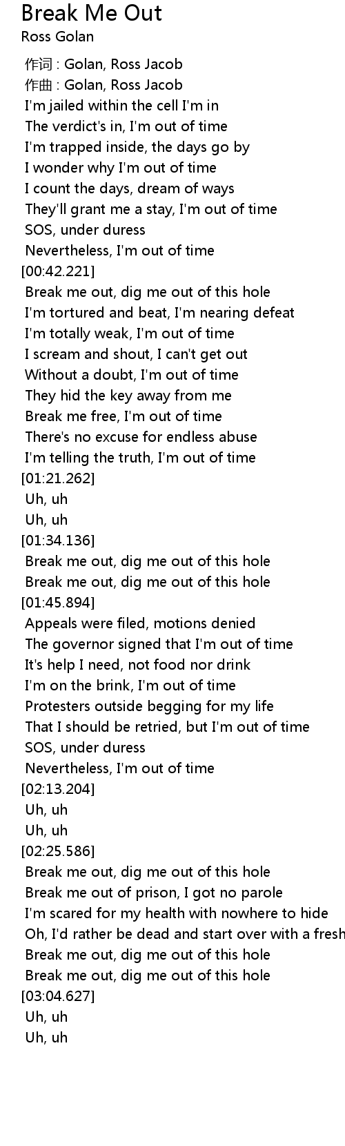 | [00:31.691] | They' ll grant me a stay, I' m out of time |