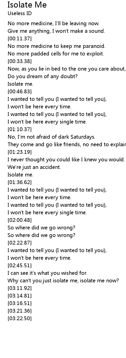 [03:02.53] Why can't you just isolate me, isolate me now?
