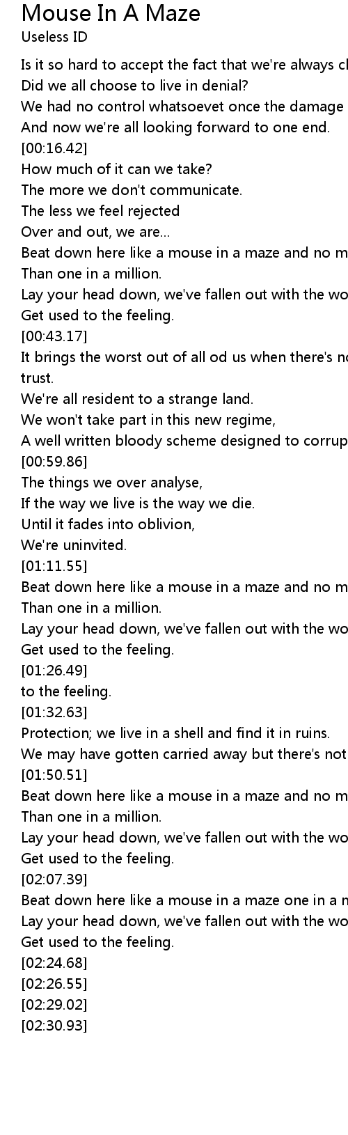 Beat down here like a mouse in a maze and no more |