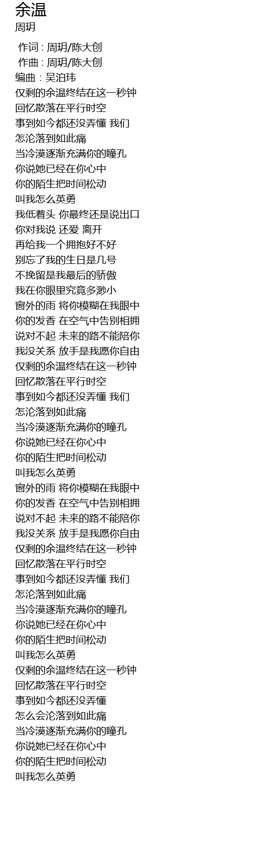 | [03:03.87] | jǐn shèng de yú wēn zhōng jié zài zhè yī miǎo zhōng |