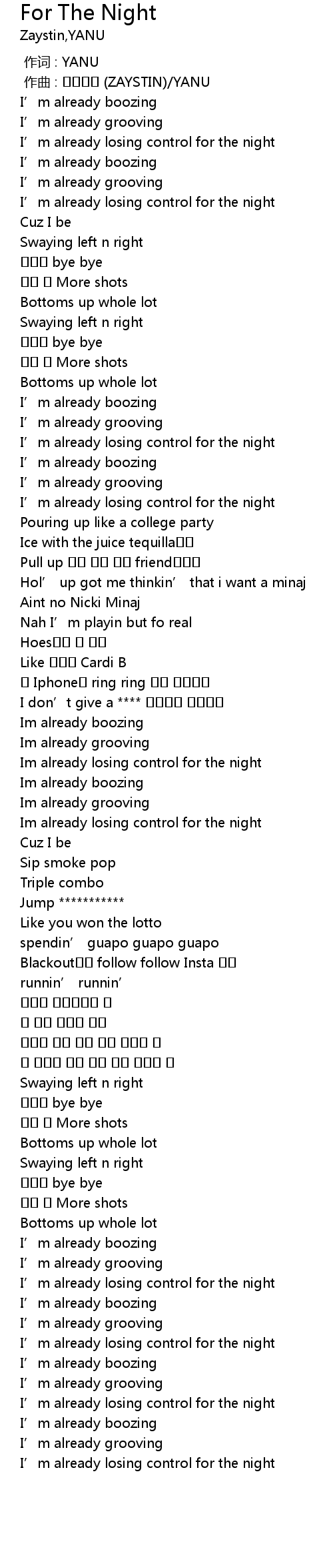 | [00:44.014] | I' m already losing control for the night |