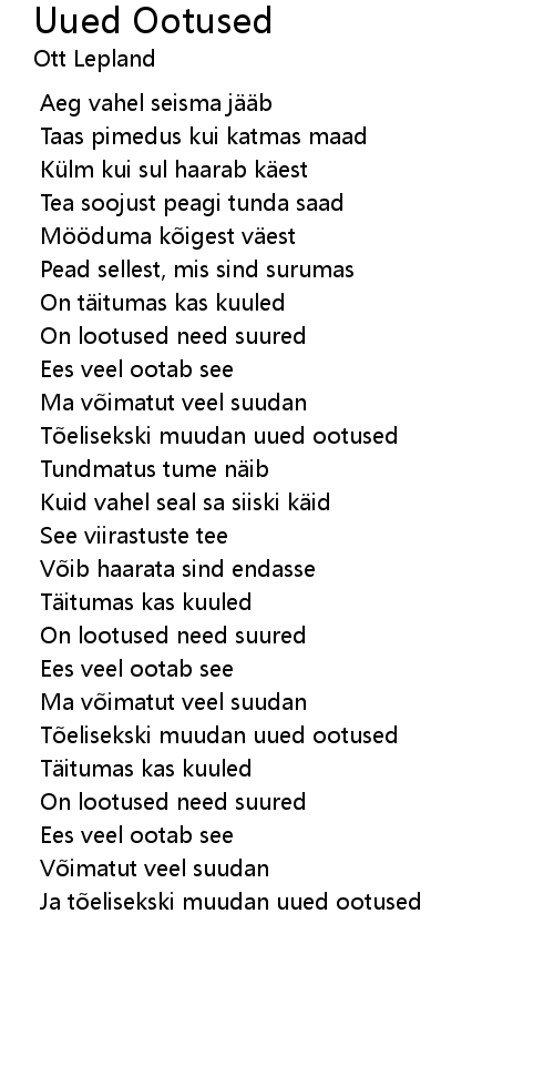 | [01:24.271] | Tõelisekski muudan uued ootused |