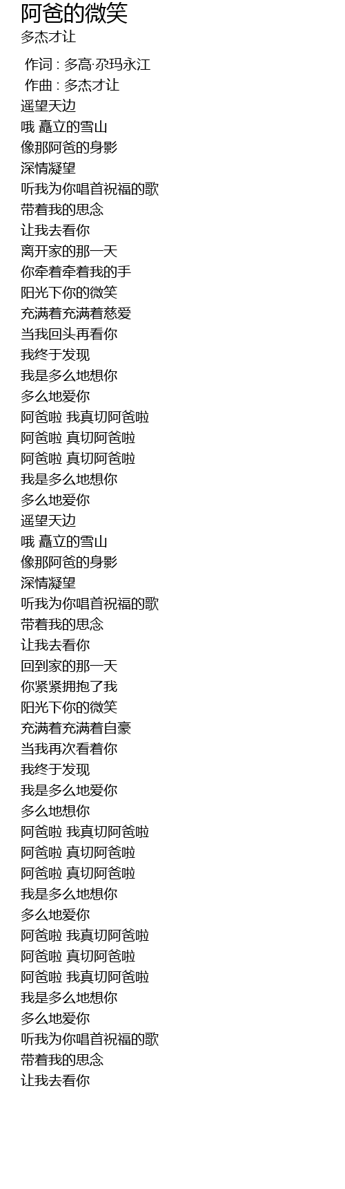 | [00:00.00] | 作词 : 多高·尕玛永江 |