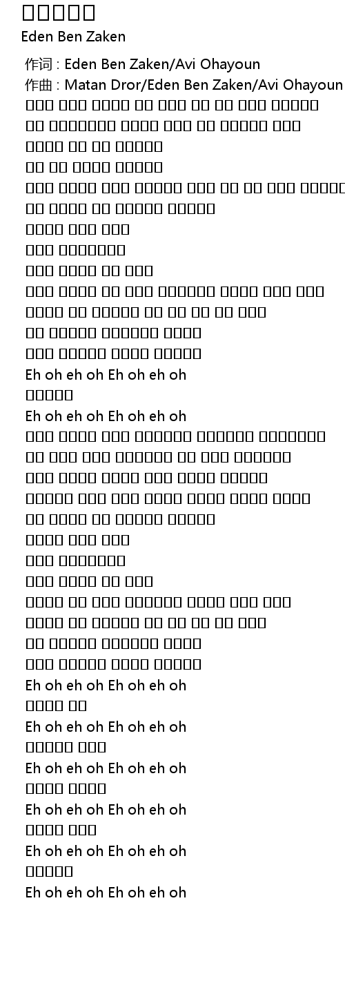 | [00:00.000] | 作词 : Eden Ben Zaken/Avi Ohayoun |