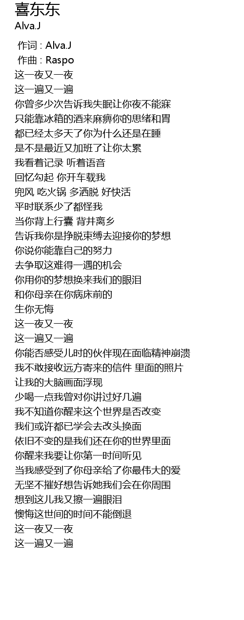 | [00:00.000] | 作词 : Alva.J |