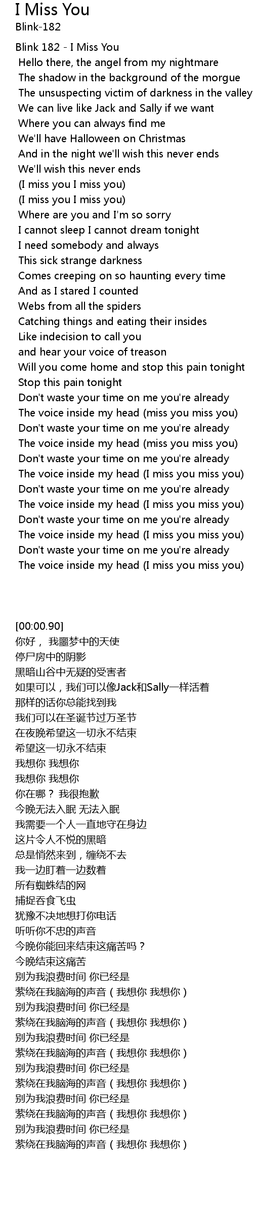 | [00:00.90] | Blink 182 - I Miss You |
