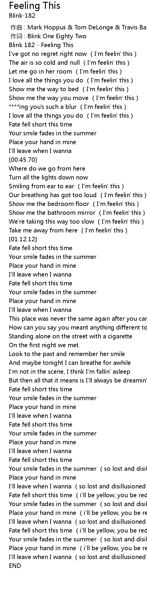 | [00:00.00] | zuo qu : Mark Hoppus Tom DeLonge Travis Barker |