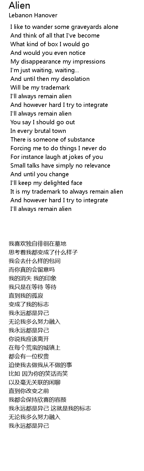 Alien Lyrics