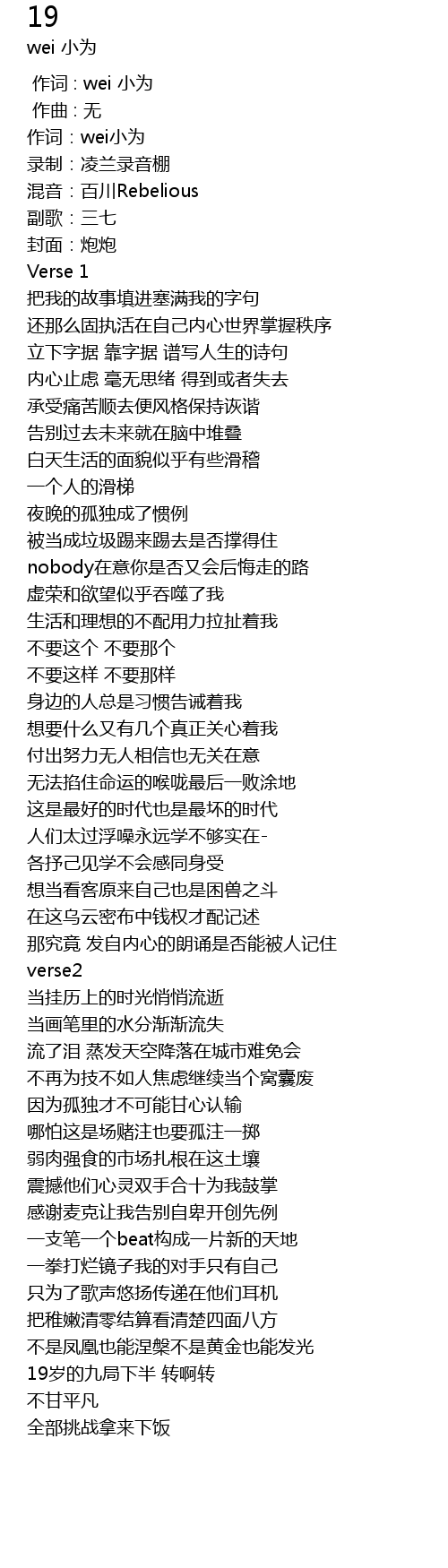 | [00:01.07] | 作词:wei小为 |