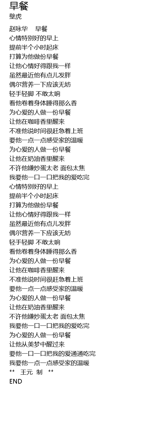| [00:05.95] | zhào yǒng huá zǎo cān |