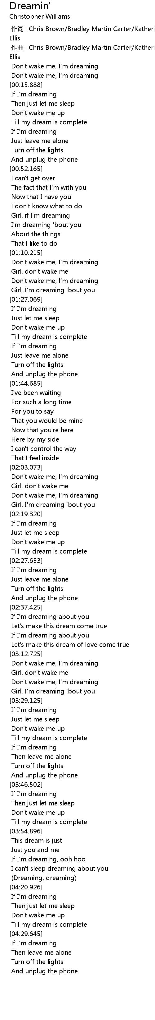 | [03:21.475] | Don' t wake me, I' m dreaming |