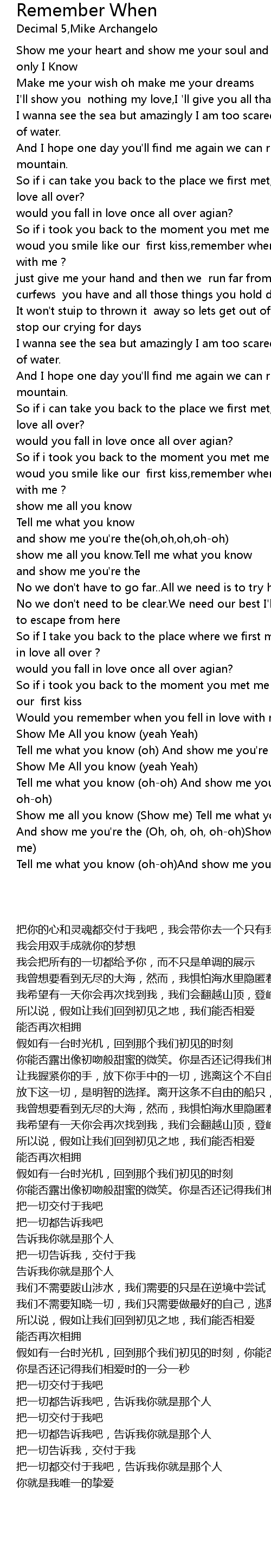 Remember When Lyrics