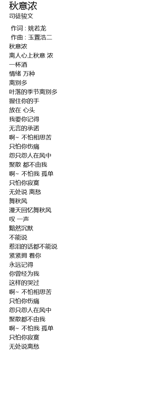 | [00:00.00] | 作词 : 姚若龙 |