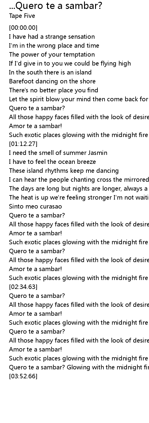 | [03:38.55] | Quero te a sambar? Glowing with the midnight fire… |