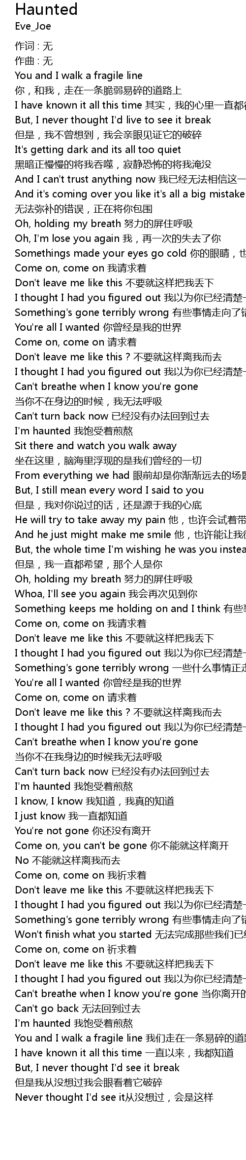 | Can' t breathe when I know you' re gone dāng nǐ bù zài wǒ shēn biān de shí hòu wǒ wú fǎ hū xī | |