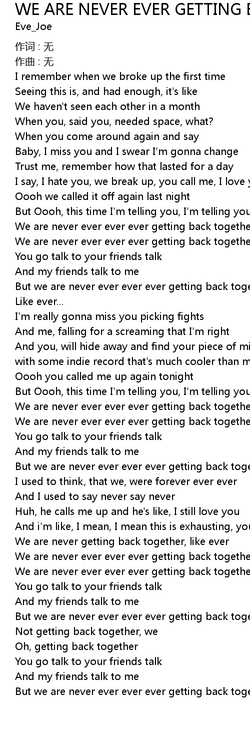 | But we are never ever ever ever getting back together | |