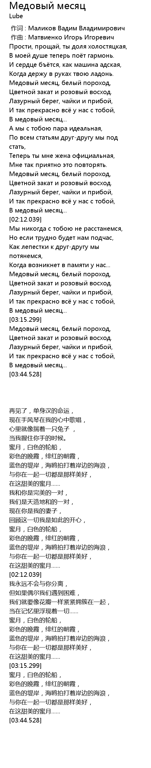 [02:40.685] Медовый месяц, белый пороход,