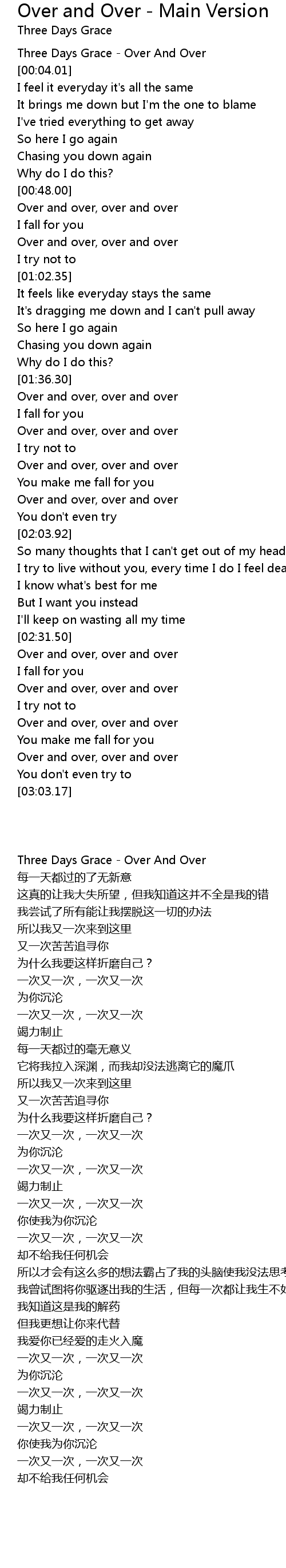 [00:01.24] Three Days Grace - Over And Over