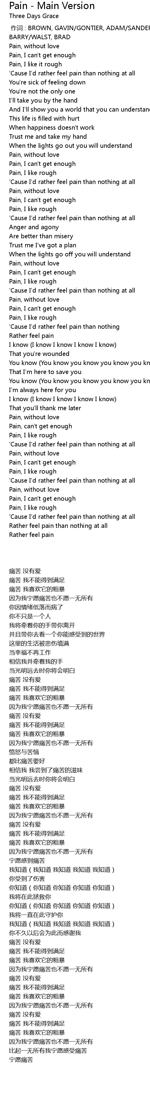 | [02:32.75] | Pain, can' t get enough |