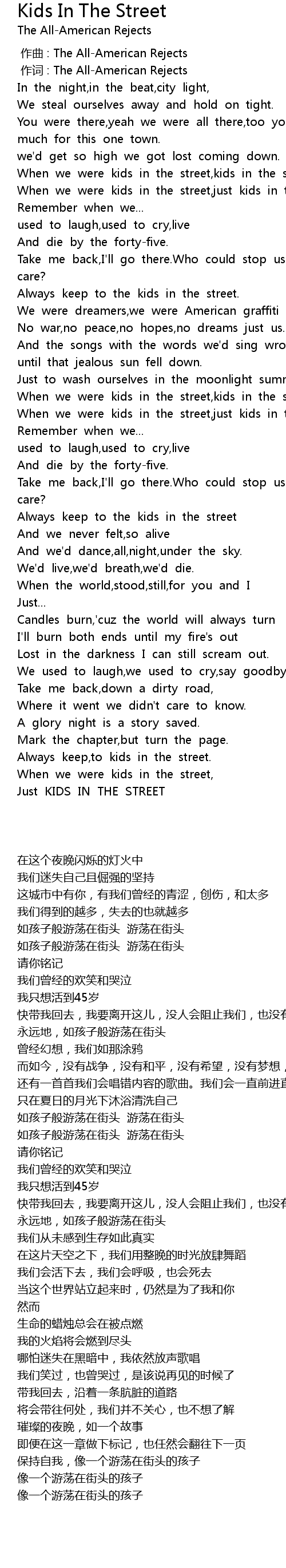 | [00:51.57] | When we were kids in the street, kids in the street. |