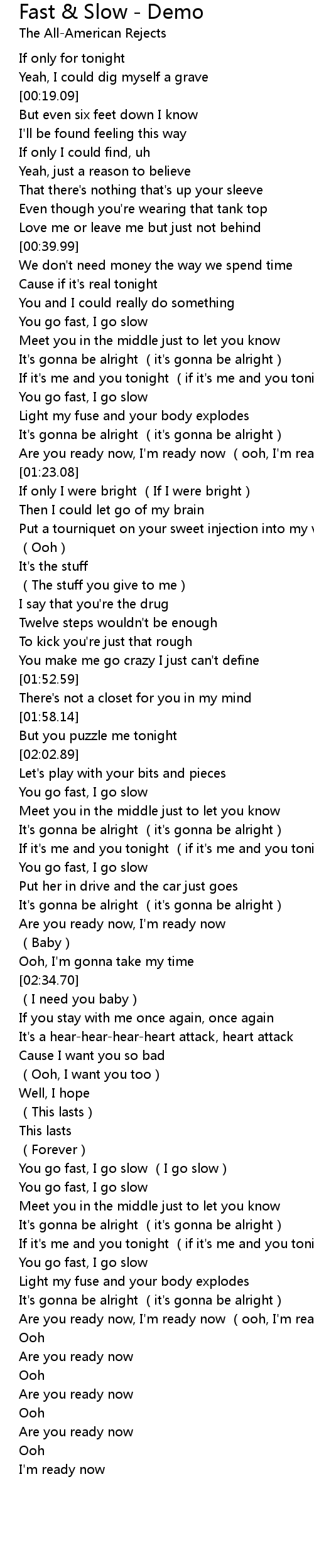 | [02:56.05] | You go fast, I go slow (I go slow) |