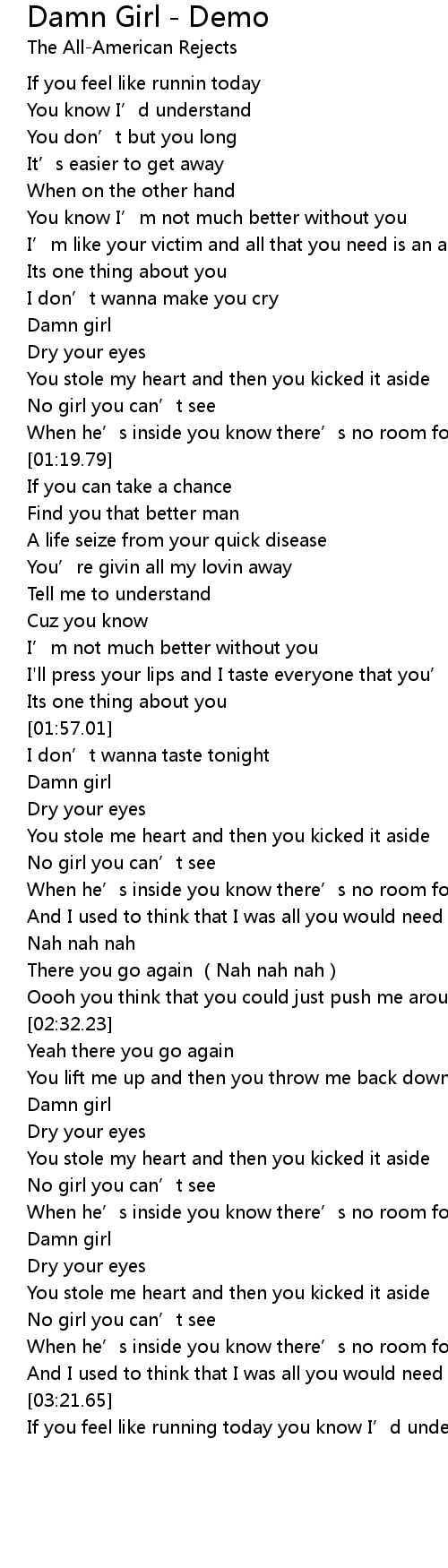 | [02:45.52] | You stole my heart and then you kicked it aside |