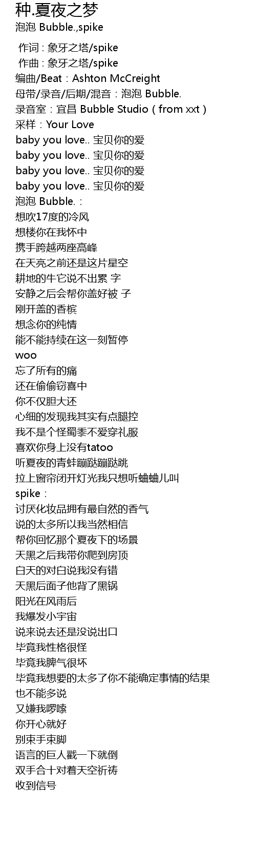 | [00:02.421] | 母带/录音/后期/混音:泡泡 Bubble. |
