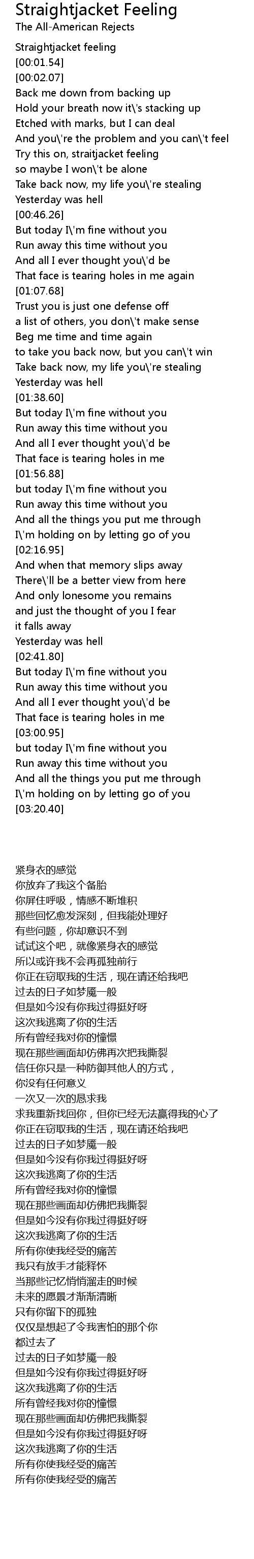 Straightjacket feeling |