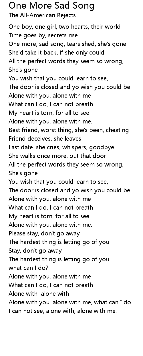 One more, sad song, tears shed, she's gone |