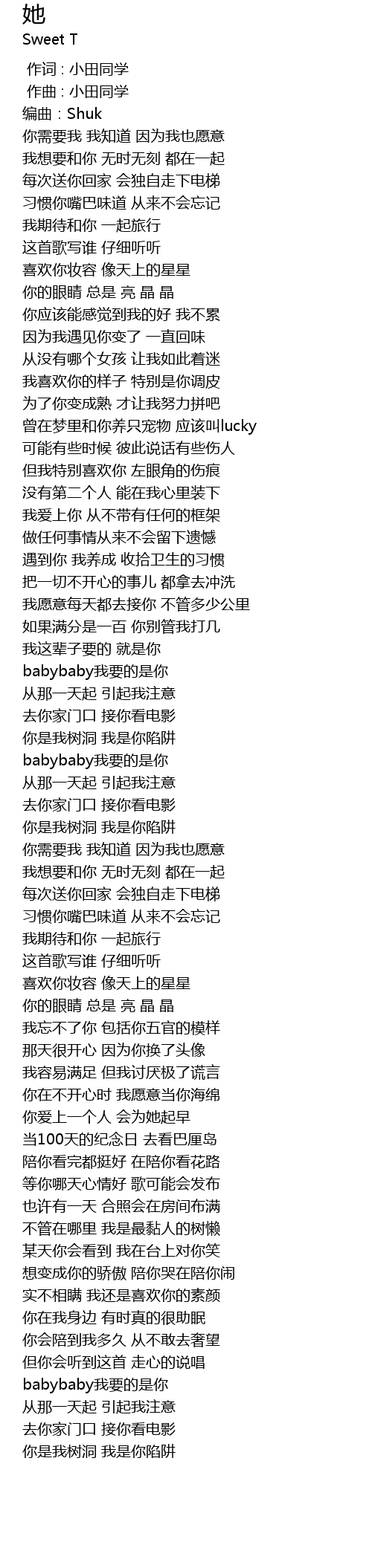 | [01:36.184] | babybaby我要的是你 |