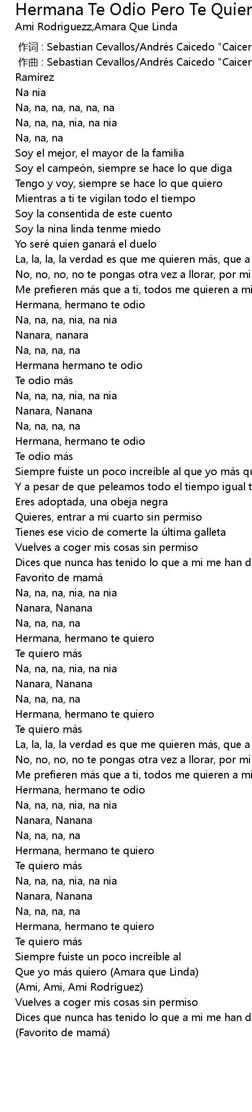| Song | Hermana Te Odio Pero Te Quiero |