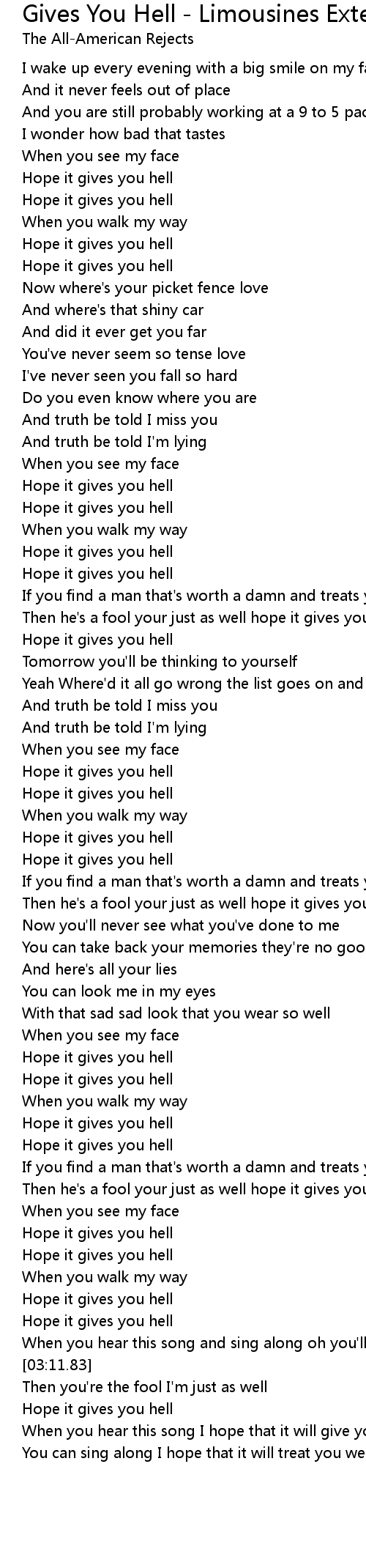 [03:01.10] Hope it gives you hell