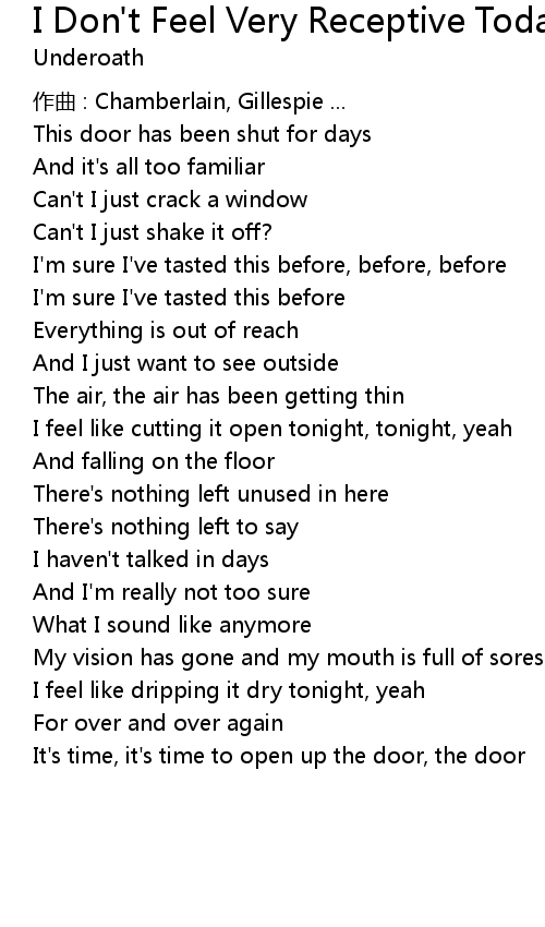 | Song | I Don't Feel Very Receptive Today |