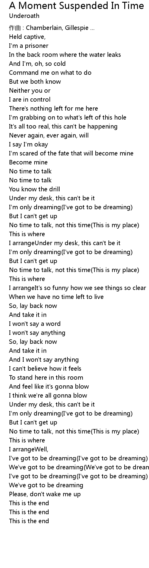 | Song | A Moment Suspended In Time |