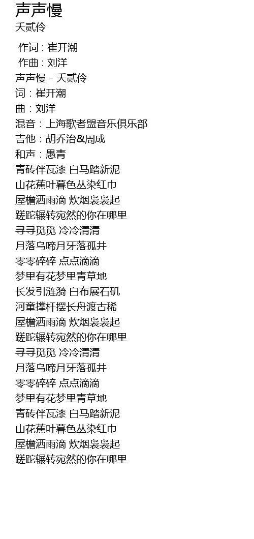 | [00:00.438] | 声声慢 - 夭贰伶 |