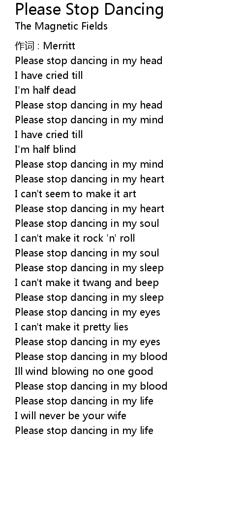 | Please stop dancing in my life | |